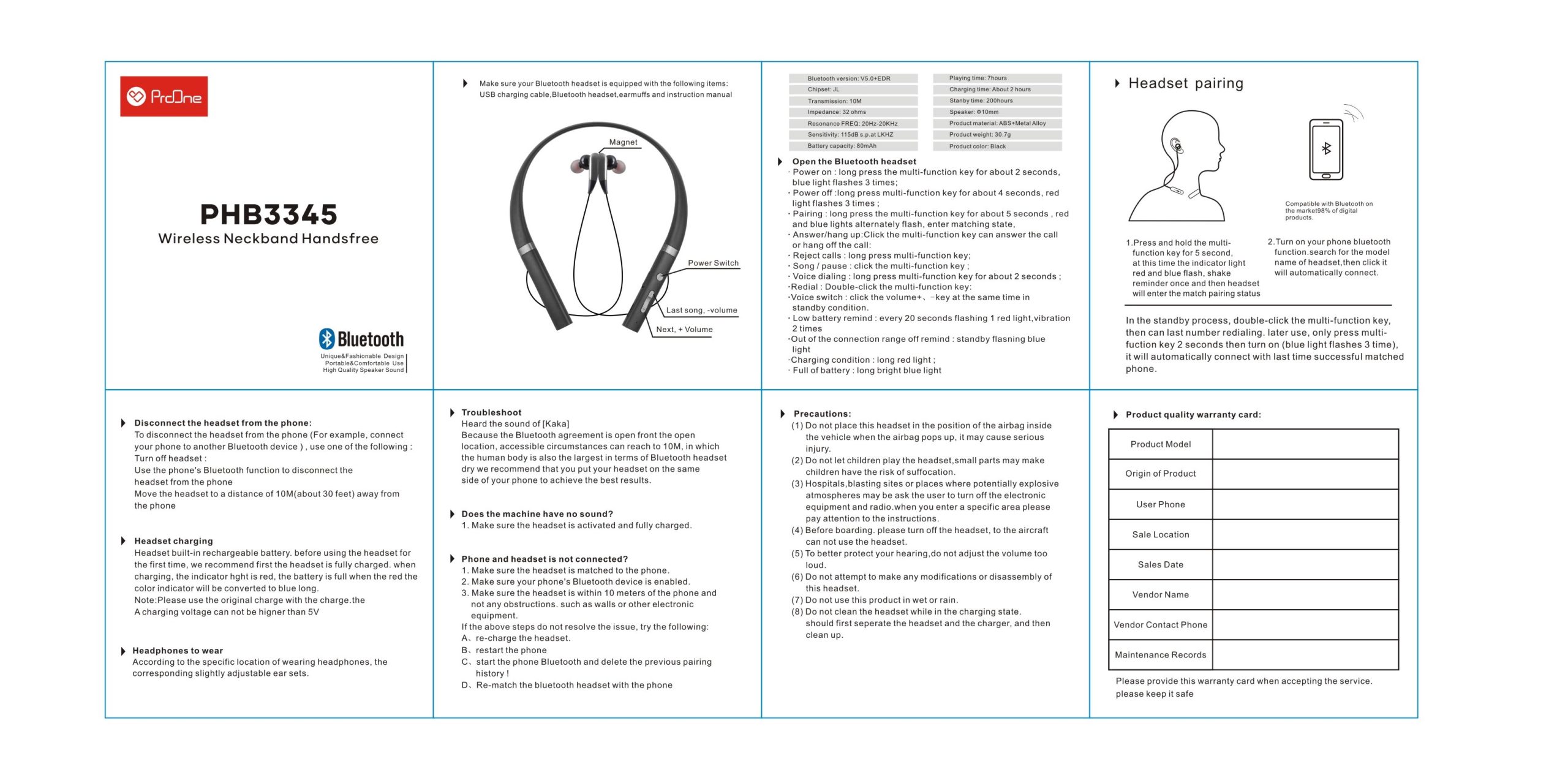 🔧 ویژگیهای فنی هنذفری بلوتوثی پرووان مدل phb3345